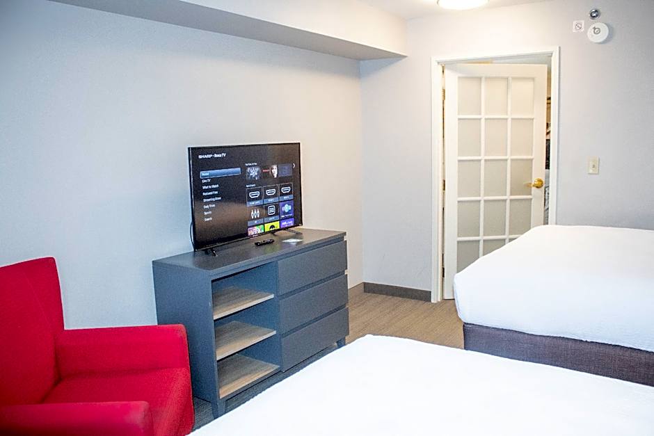 Providing free toiletries, this suite includes a private bathroom with a bath, a shower and a hairdryer. This wheelchair accessible suite features air conditioning, a seating area with a flat-screen TV and a toilet with grab rails.